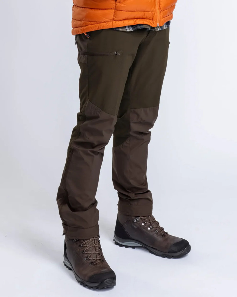 Funkcionális kültéri nadrág 4 irányban rugalmas anyagból, jó szellőzőrésszel az ülepnél és a szárak alsó részén. Könnyű. Szélálló és vízlepergető. Membránnal ellátva az ülepnél és a térdtől lefelé. Négy zsebes kialakítás cipzárral záródó. Állítható derék. Csizmaakasztók. Nincsenek ragasztott varrások. Organikus és fluorkarbonmentes impregnálással kezelt - Bionic Finish® Eco az extra vízlepergető tulajdonságokért. Alkalmas általános viseletre, horgászathoz, kutyás sportokhoz, túrázáshoz.