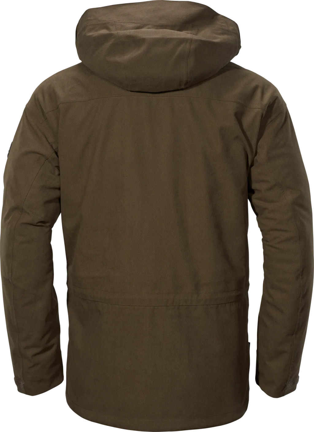 A Driven Hunt HWS Insulated kabát tartós, 84% poliészter és 16% poliuretán összetételű anyagból készült. Az anyag DWR kezelést kapott, amely szennyeződés- és vízlepergetővé teszi. A kabát belsejét meleg, 120 grammos Thermo Poly Shield™ Fill vatelin bélelte, a felső hátrészen pedig extra gyapjú béléssel. A kabát szél- és vízálló HWS® Härkila Weather System kétrétegű membránnal is rendelkezik, amely ellenáll az ónos esőnek és az esőnek. A kabát megfelelő hosszúságú, hogy melegen tartsa az ágyéki területet és az ülepet, és ülés közben sem csúszik fel. A kabát bal mellkasán rádiótartó zseb található, felül és oldalon cipzáras, könnyen hozzáférhető nyílásokkal. A bal felső ujjon egy kis zseb található, amelybe varrt fényvisszaverő karszalag tartozik, egyik oldalán piros, a másikon narancssárga, és könnyen a kar köré rögzül. A Driven Hunt HWS Insulated kabát két ferde kézmelegítő zsebbel és két nagy elülső zsebbel rendelkezik, fedéllel, alacsony zajszintű mágneses záródással. A jobb oldali elülső zsebbe egy tölténytartó van varrva. A kabát fő, kétirányú cipzárját szél- és vízálló, zajcsökkentő, gumírozott patentgombokkal ellátott fedél fedi. Van egy belső zseb, a kapucni levehető, a kapucnin, a derékon és az alsó szegélyen pedig rugalmas húzózsinórok találhatók.
