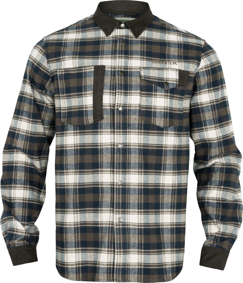 A Harkila Aivak ing puha, kefélt flanel anyagból készült, amely 97% pamutból és 3% elasztánból áll. Ez enyhén rugalmassá teszi az inget, és a modern, szűkebb szabással kombinálva kivételes kényelmet garantál. Az ing művelúr megerősítésekkel rendelkezik a nagy igénybevételnek kitett területeken – a galléron, a könyökökön és a mandzsettákon. Patentgombos záródású és mindkét oldalon mellzsebekkel rendelkezik, a bal oldali zseb gombos, a jobb oldali zseb pedig vízszintes cipzáras. Ezenkívül a gallér rejtett gombokkal van rögzítve a gallér hegye alatt.