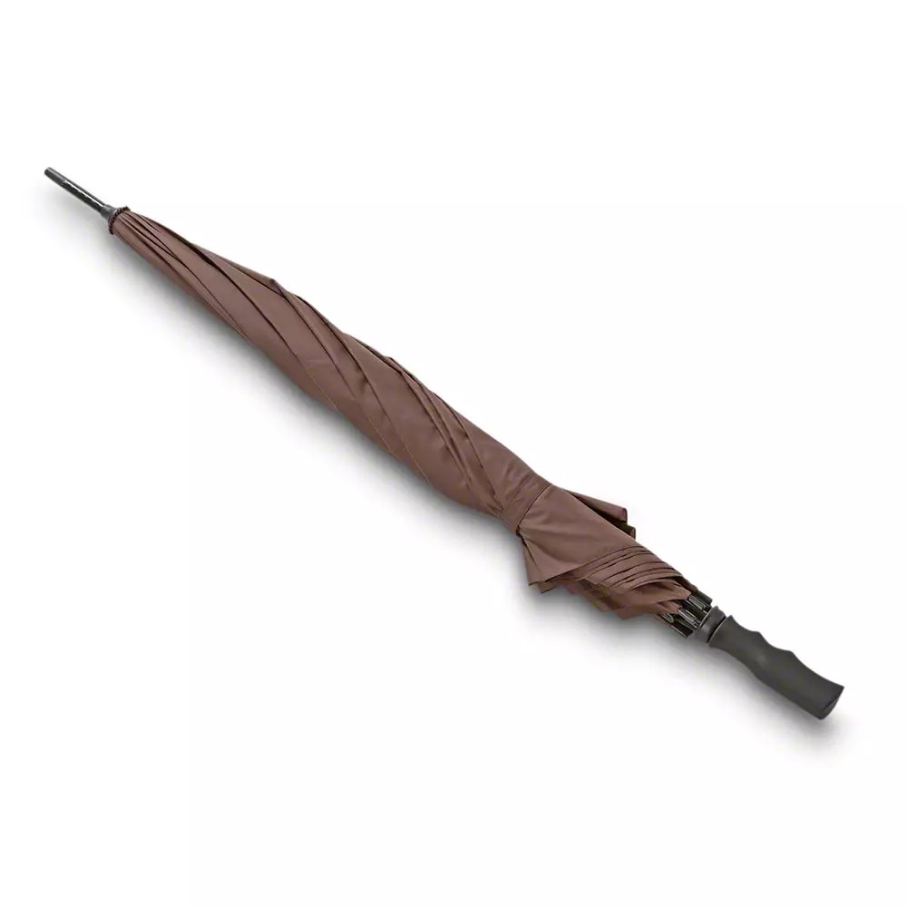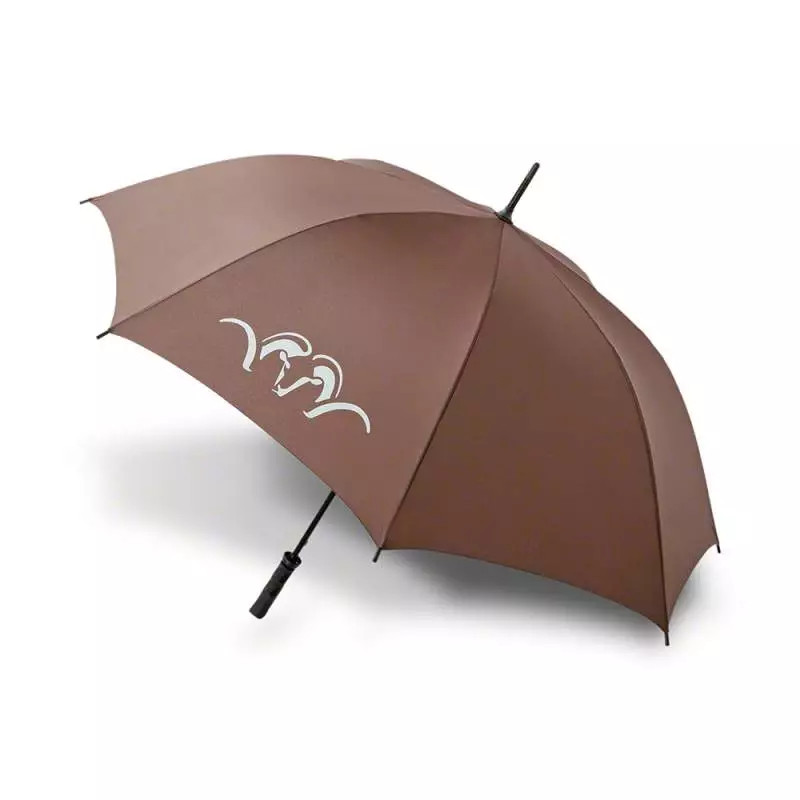 Ez a nagy méretű, barna színű esernyő nyomtatott Blaser Argali logóval legalább annyira lenyűgöző Blaser megjelenésével, mint méretével. Könnyedén véd két embert az esőtől – a szél- és vízálló poliészter pongee anyagnak köszönhetően,