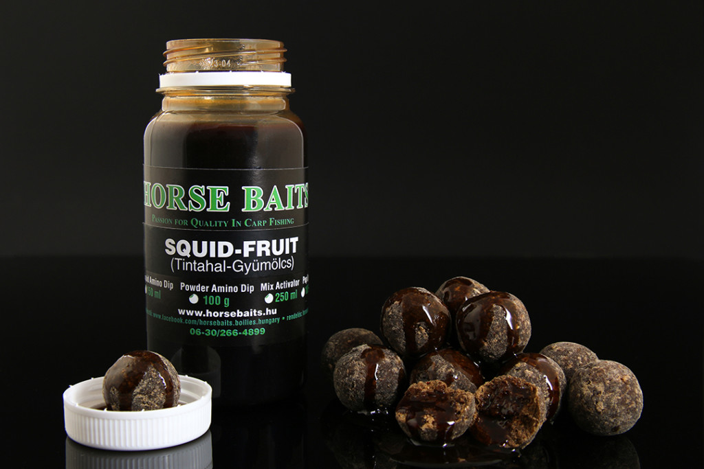 A legjobb hatást akkor érjük el, ha a bojlival megegyező ízazonos folyékony Horse Baits - Liquid Amino Dip-et használunk.