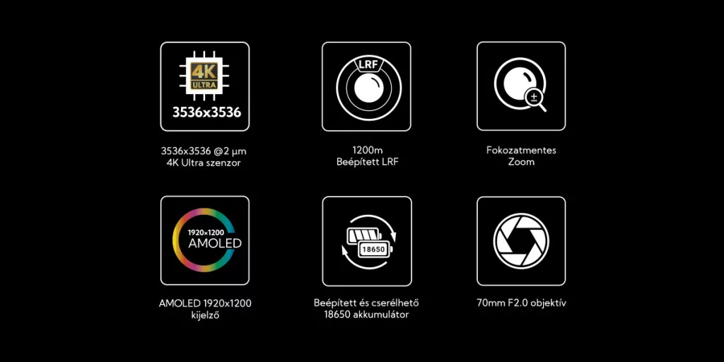 A Nite 70 mm-es objektívvel és 5× alapnagyítással érkezik. Tökéletes választás közép- és hosszú távú precíziós célzáshoz. Legyen szó sűrű erdőről vagy nyílt terepről, a Nite kristálytiszta, kontúros és informatív képet nyújt.
