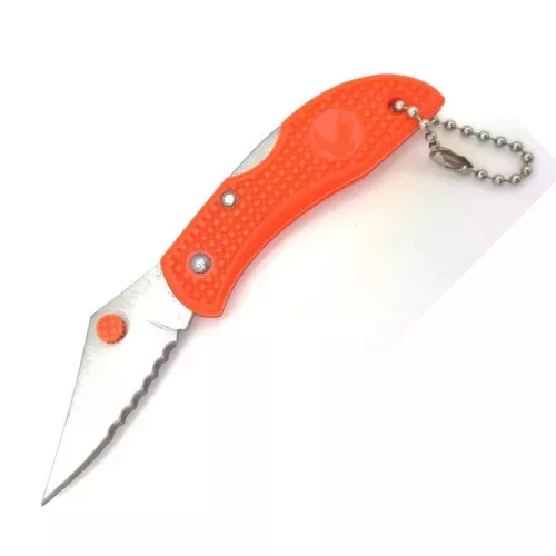 Narancssárga,zöld és fekete markolatú kiskések, fogazott pengével.
